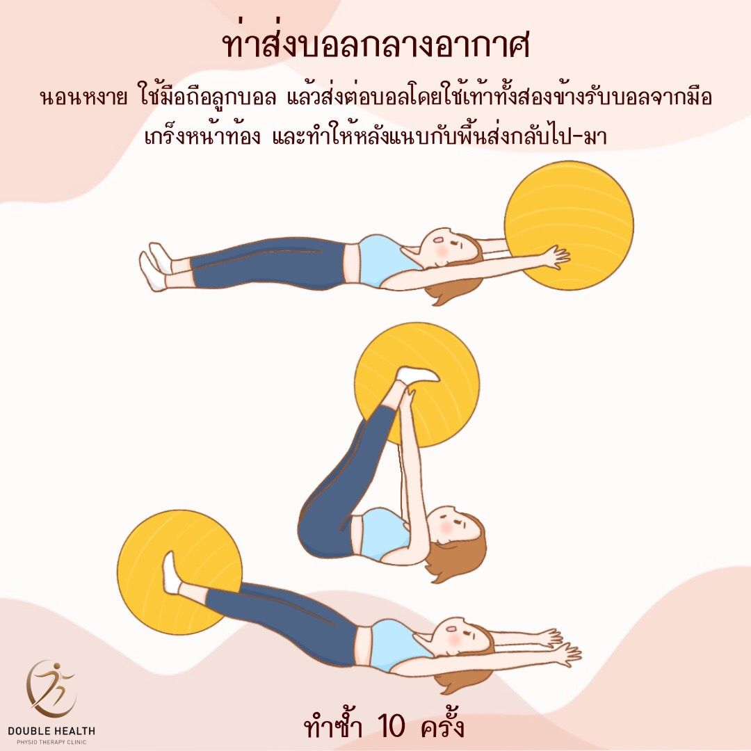 โดยเฉพาะ Core stabilize muscle Double Health Physiotherapy Clinic ขอนำเสนอท่าออกกำลังกายด้วย Gym ball รับรองว่าทั้งง่ายและสนุกแน่นอนค่ะ ตามมาดูไปพร้อม ๆ กันเลยได้